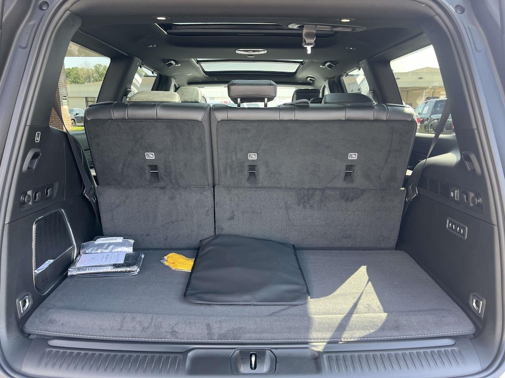 - Access to the cargo area is gained via a large, power-operated rear door that opens upwards. This door may also contain the rear windshield of the vehicle.